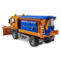 Setul include atât camionul de deszăpezire Mercedes Arocs, cât și plugul lama.