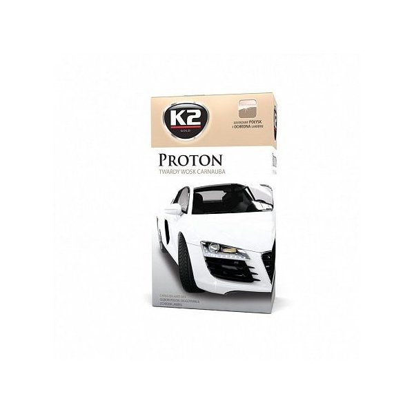 K2 Proton este o ceara protectoare extrem de eficienta, bazata pe cea mai grea ceara de Carnauba. Ofera stralucire oglinda si intensifica culoarea picturii. Usor de aplicat si lustruit. Pentru o perioada lunga de protectie, chiar si pana la zeci sau mai multe cicluri de spalare. Dupa aplicare, vopseaua devine complet neteda, permitand picaturilor de apa sa curga pe vopsea.