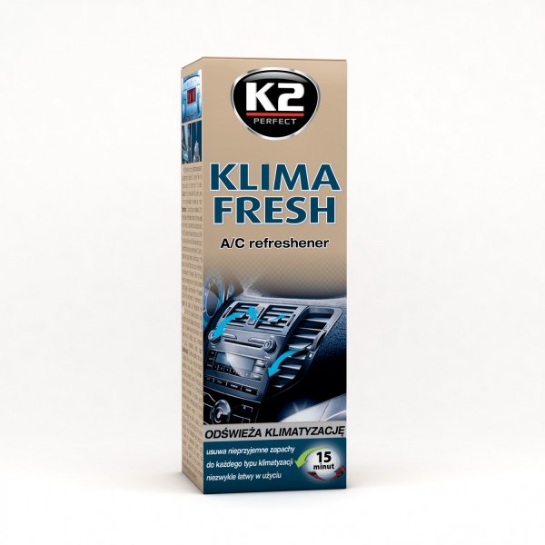 K2 KLIMA FRESH este un agent extrem de eficient si usor de utilizat pentru improspatarea aerului conditionat. Acesta elimina mirosurile neplacute, care apar din cauza impuritatilor si a umiditatii din sistemul de ventilatie. Intregul proces nu dureaza mai mult de cateva minute. Potrivit pentru toate tipurile de aer conditionat. Lasa un parfum proaspat de lamaie dupa utilizare.