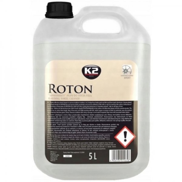 K2 Solutie Curatat Jante Premium Roton 5L G165:Jantele curate și strălucitoare la soare sunt un complement perfect pentru o mașină cu aspect perfect. De aceea am creat un fluid extrem de eficient și sigur pentru curățarea tuturor tipurilor de jante - oțel, aluminiu, crom și vopsit.Efectul rotii rosii:K2 Roton 5L îndepărtează spectaculos toată murdăria încăpățânată, inclusiv nămolul plăcilor de frână și murdăria rutieră, care are ca rezultat o culoare roșie a fluidului aplicat. Spălarea jantelor cu lichid este rapidă, eficientă și eficientă și nu necesită niciun efort. Murdăria este îndepărtată fără riscul de a zgâria suprafața curățată.Foto: efect roșu roșu după utilizarea K2 Roton