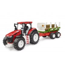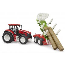 Modelul este dotat cu roți mari profilate, ideale pentru orice tip de teren – fie nisip, iarbă sau podea. Cabina tractorului este detaliată, ușor de manevrat de mânuțele mici. Remorca inclusă este basculabilă, perfectă pentru a încărca și descărca cei 3 bușteni din plastic rezistent care vin în set.